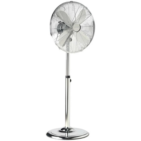 Ce ventilateur chromé de 40 cm sur socle est réglable en hauteur.